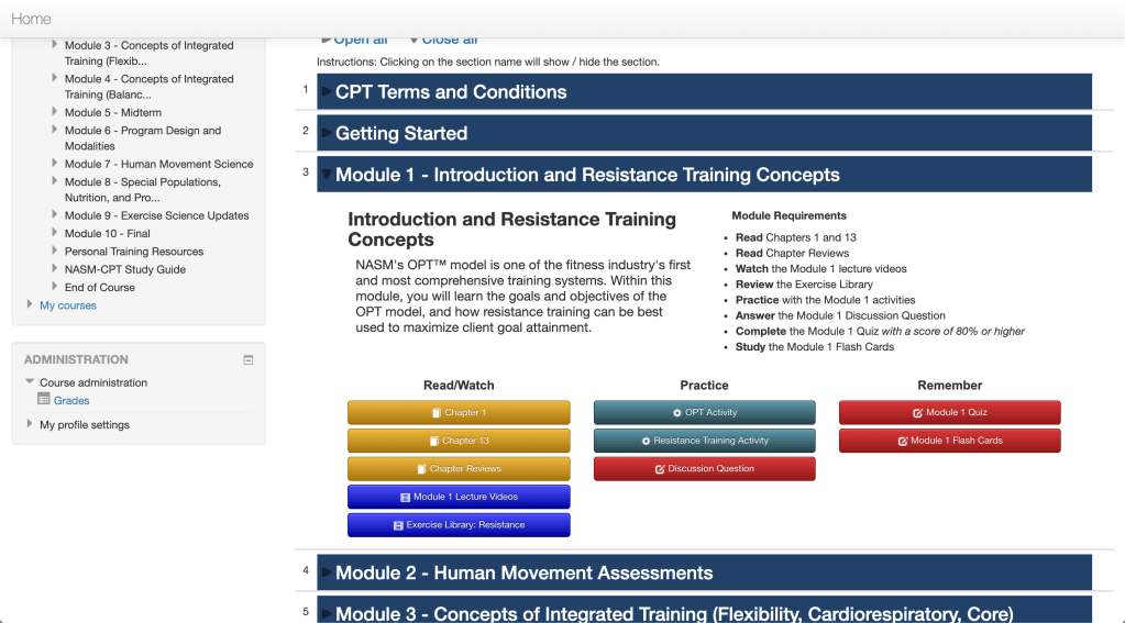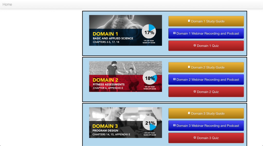 You may not expect to see any material on neurons or the oxidative system, but NASM has it all. While you are learning about the different systems of the human body, you are also learning the processes the body undergoes on a molecular level to further understand all the components involved in something as simple as a simple bicep curl. The first section of the textbook outlines exercise science, anatomy and physiology. Section two outlines the different styles of training such as cardiovascular, plyometric, balance, etc. Section 3 outlines the limited nutrition and supplementation advice we as personal trainers can give. The last section outlines professional development and client coaching. There are 600+ pages and you must know practically the entire book front to back!